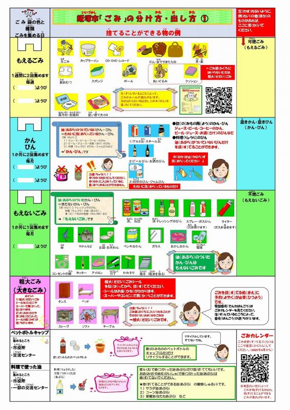 飯塚市のごみの分け方・出し方について説明したごみ分別シートを作成しています。ぜひご利用ください。国際政策課の外国人相談窓口でも配布していますので、必要な方はお申し出ください。