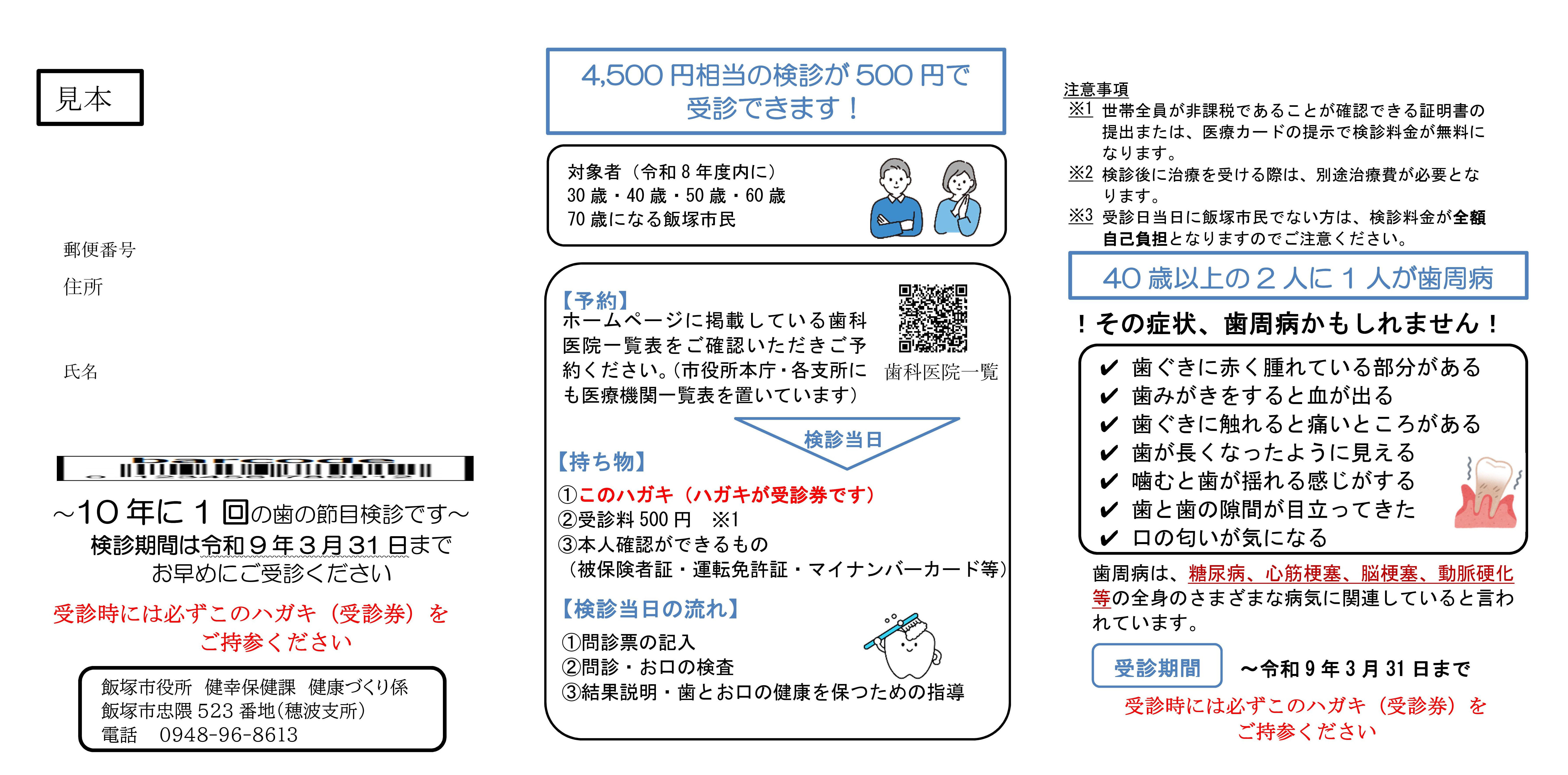 - 令和8年度飯塚市歯周病検診受診券(はがき)